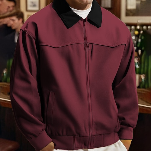 Per uomo Giacca camicia Giacca invernale Semplice Vacanza Abbigliamento quotidiano Nero Rosso Verde Cachi Manica Lunga Bavero Autunno Inverno Abbigliamento Con zip