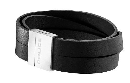 Police Mens Backlash in Black Leather Bracelet - Silver - One Size | Police Mens Sale | Discount Designer Brands
