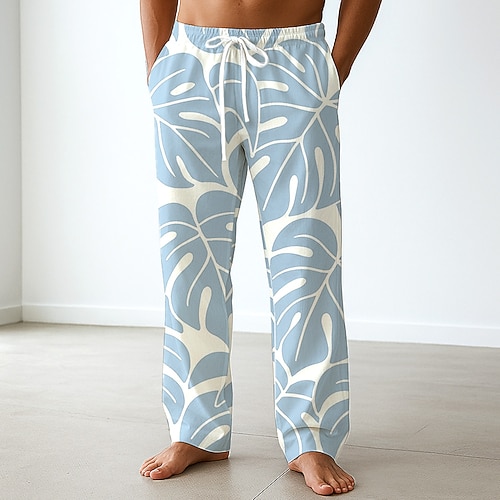 Per uomo Foglia di palma Piante Tropicali Pantaloni Pantaloni Larghi Pantaloni casual Misura del girovita medio Hawaiano Vacanza Ferie Abbigliamento mare Coulisse Elastico in vita Gamba larga Estate