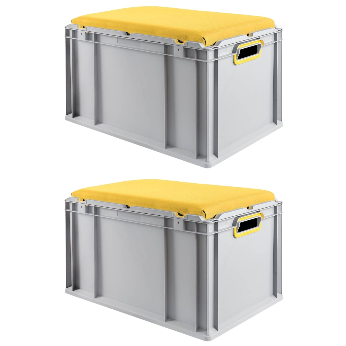 PROREGAL 2x Eurobox NextGen Seat Box Gelb | HxBxT 36,5x40x60cm | 65 Liter | Griffe offen | Eurobehälter, Sitzbox