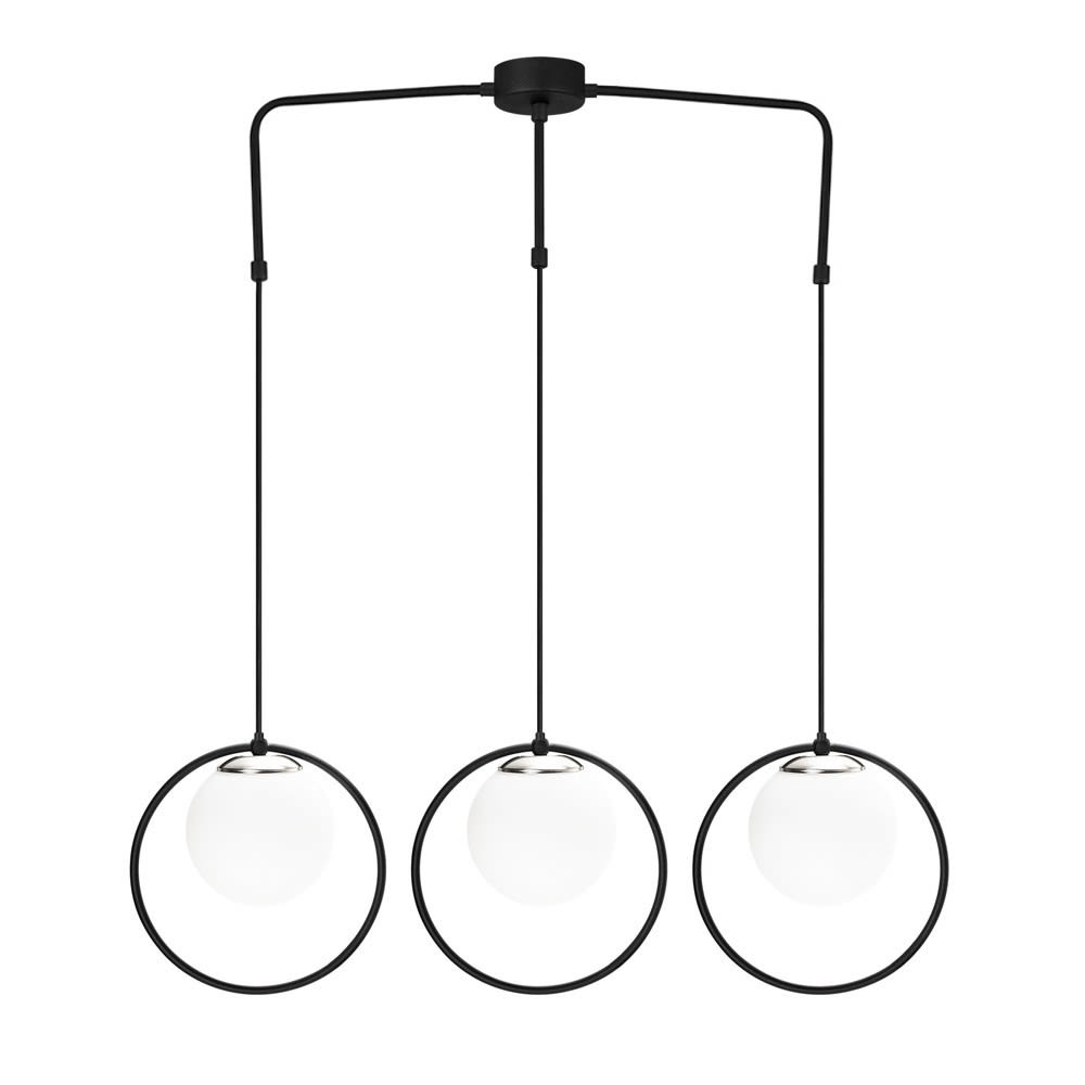 Barra di faretti 3 luci nera forma di anello ed sfera in vetro opalino