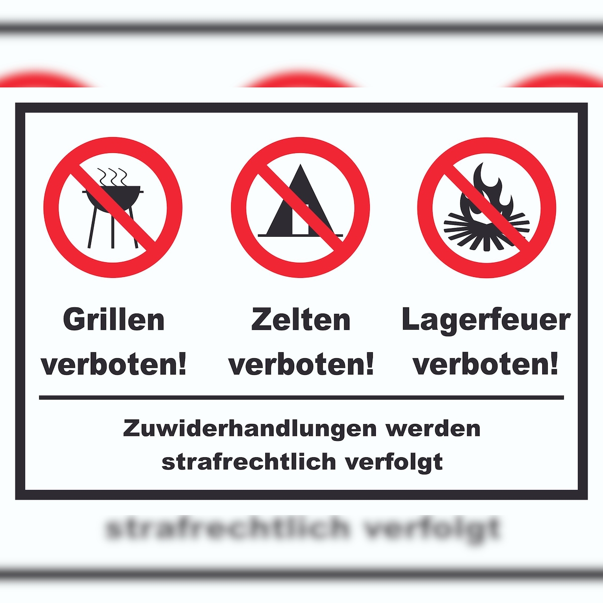 Grillen Zelten Lagerfeuer verboten Schild A3 (297x420mm)