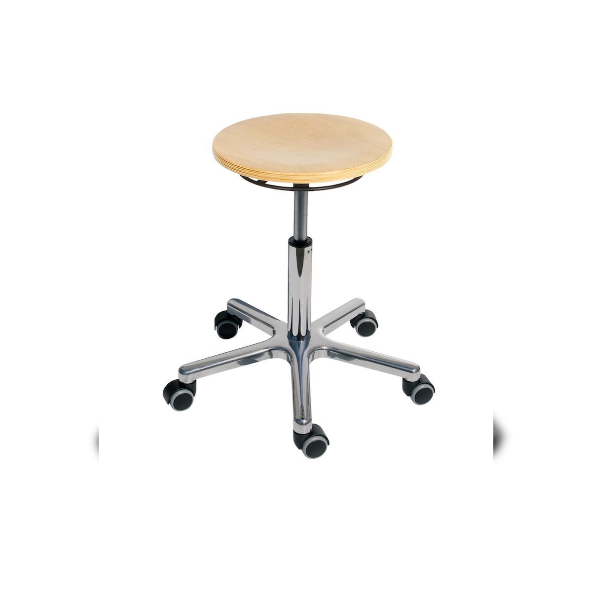 PROREGAL Drehhocker Atlanta, Sitzhöhe 47-65cm, Tragfähigkeit 110kg, Holz-Buche, Aluminium-Fußkreuz, Rollen, Ringauslösung, Buche