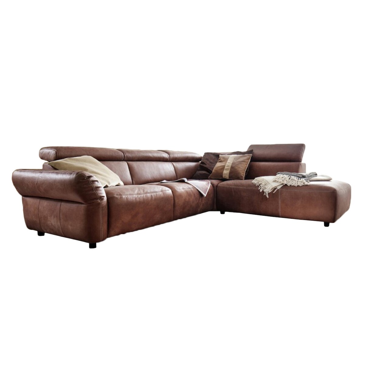 KAWOLA Sofa RISO Ecksofa mit motorischer Sitztiefenverstellung Leder braun Recamiere rechts