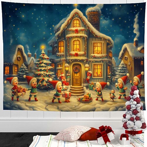 Arazzo natalizio con casa innevata – arazzo da parete con paesaggio invernale da sogno, coperta decorativa per le feste, per la casa, la camera da letto, il soggiorno, la decorazione natalizia