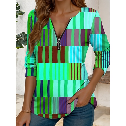 Per donna Maglietta Grafico Geometrico Vintage Elegante Casual Manica Lunga Girocollo Top Regolari Quotidiano Cerniera Stampato Blu Viola Arancione Verde Estate Primavera
