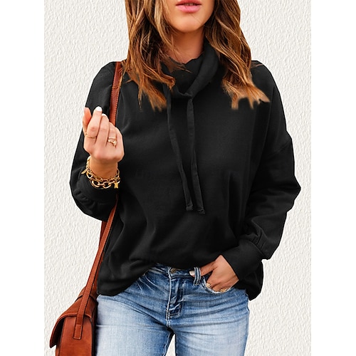 Per donna Felpa con cappuccio pullover Liscio Sportivo Informale Manica lunga Con cappuccio Top regolari Collage Nero Rosso Marrone Primavera Autunno Inverno