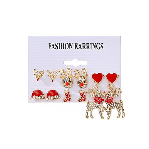 set di orecchini natalizi da donna, lega placcata in oro con motivi festivi, renne, stelle e alberi di Natale, gioielli natalizi per feste e celebrazioni invernali