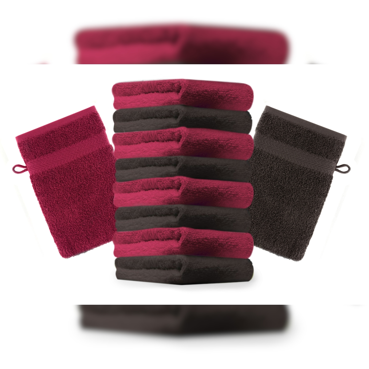 Betz 10 Stück Waschhandschuhe PREMIUM 100% Baumwolle Waschlappen Set 16x21 cm Farbe dunkelrot und dunkelbraun