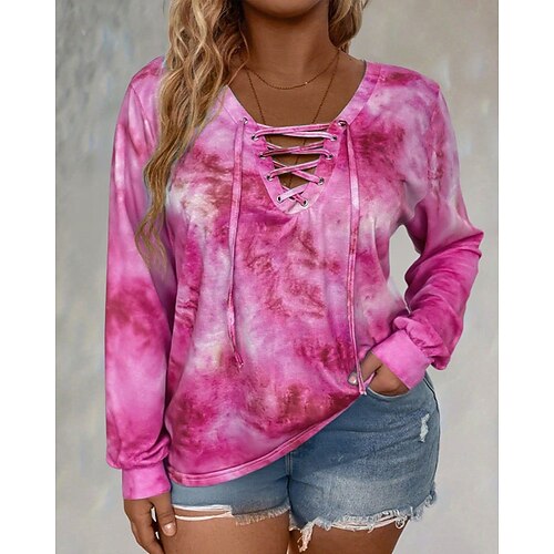 Per donna Blusa Tinta a nodi Elegante Casual Manica Lunga Scollo a V Top Regolari Quotidiano Uscire Weekend Patchwork Blu Nero Rosa Blu marino Viola Estate Primavera Autunno