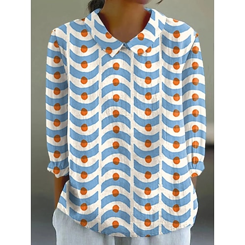 Per donna Camicia Grafico Geometrico Vintage Elegante Moderno Manica Lunga Colletto a Camicia Top Regolari Quotidiano Bottoni Stampato Blu Bianco Rosso Primavera Inverno