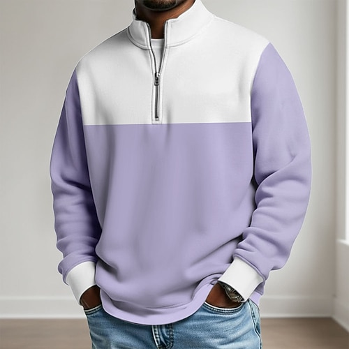 Per uomo Blocco di colori Polo con zip Manica Lunga Magliette polo Colletto alla coreana Casual Scuola Athleisure Ferie Abbigliamento quotidiano Stampa 3D Polo con cerniera a un quarto Primavera