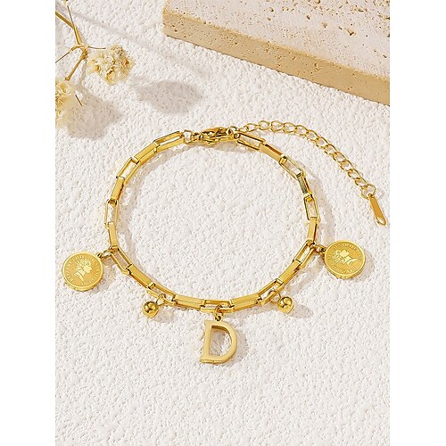 Bracciale da donna placcato in oro con lettere dell'alfabeto, ciondoli a forma di moneta e pallina, catena regolabile, elegante regalo di Natale per lei, accessorio di gioielleria personalizzato