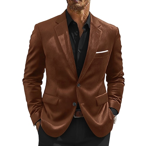 Per uomo Giacca blazer Colletto ad incastro Casual Tinta unita Blazer di velluto Borgogna Marrone Verde militare Vestibilità aderente Monopetto Due Bottoni