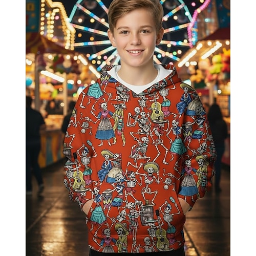 Carnevale Ragazzi 3D Grafico Teschio Martedì grasso Felpa con Cappuccio Maglione Manica Lunga Stampa 3D Primavera Autunno Sport Moda Streetwear Bambini 4-12 Anni Con cappuccio Casuale Quotidiano