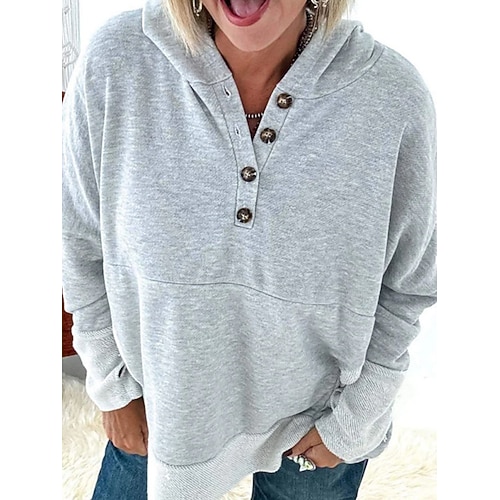 Per donna Liscio Informale Manica lunga Felpa Top regolari Strada Da giorno Bottoni Tasche Rosso Grigio chiaro Grigio scuro Autunno Inverno