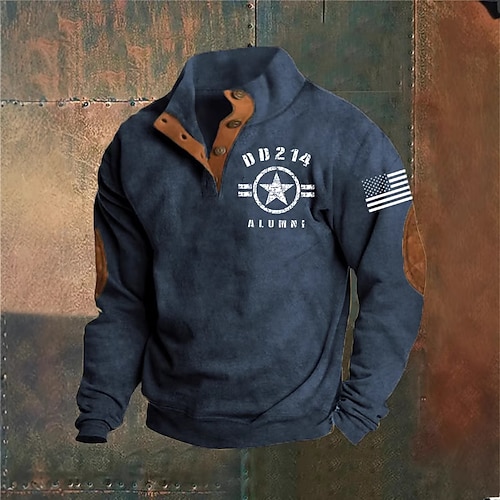 Per uomo Maglia Nero Verde militare Blu marino Marrone Grigio scuro Colletto Mao Grafico Stampa Patchwork Quotidiano Ferie Uscire Poliestere Streetwear Casual Autunno Inverno Abbigliamento Felpe con