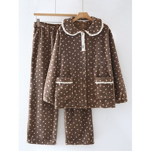 Per donna Set Pigiama Casual Comfort Floreale Elastico in vita Pantalone Casa Quotidiano Manica Lunga Colletto a Camicia Nero Marrone Grigio Primavera Autunno Inverno Vestibilità regolare
