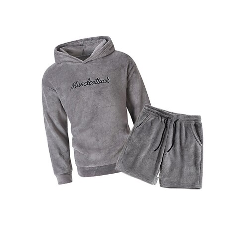 Per uomo Felpa con cappuccio Tuta da Ginnastica Felpa con cappuccio e pantaloncini Impostato Felpa con Cappuccio All'aperto Vacanza Quotidiano Coulisse Lettere Nero Viola Cachi Abbigliamento sportivo