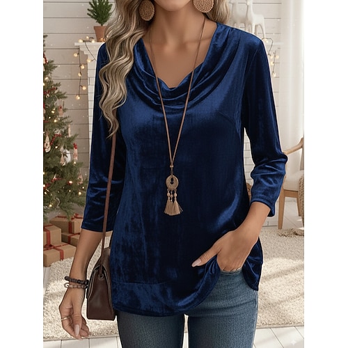 Camicia Blusa Per donna Nero Rosa Rosso Scintillante Con lustrini Tagliato Informale Di tendenza A V Standard S