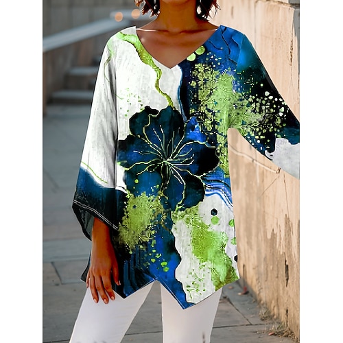 Per donna Blusa Floreale Grafico Vintage Elegante Casual Manica 3/4 Scollo a V Top Regolari Quotidiano Ferie Stampato Rosso Blu Viola Verde Primavera Autunno