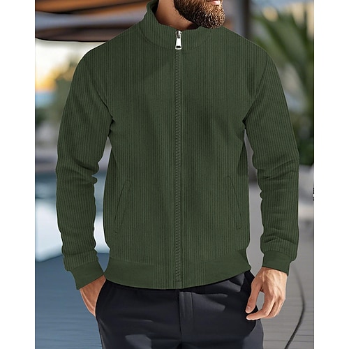 Per uomo Giacca in Velluto a Coste Giacca Casual Vacanza Quotidiano Traspirabilità Tasca Autunno Inverno Semplice Moda Classico Colletto Mao Regolare Aalbicocca Nero Blu marino Grigio chiaro Verde