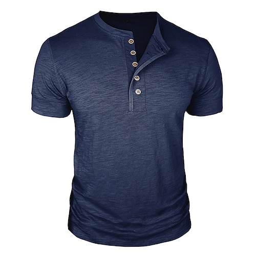 Per uomo Maglia Henley Maglietta Maglietta 100% cotone Manica Corta Tinta unica Semplice Tinta unita Casual Bottoni Henley Casuale Quotidiano All'aperto Estate Primavera Autunno Tutte le stagioni