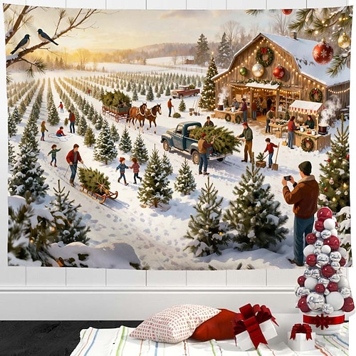 Arazzo natalizio con casa innevata – arazzo da parete con paesaggio invernale da sogno, coperta decorativa per le feste, per la casa, la camera da letto, il soggiorno, la decorazione natalizia