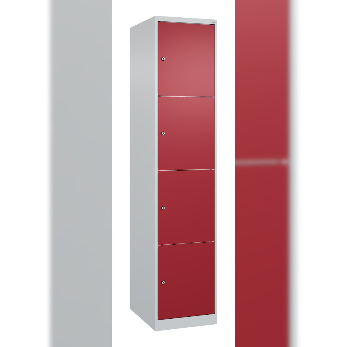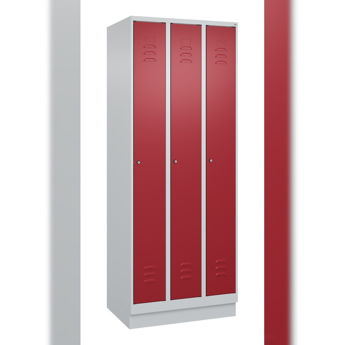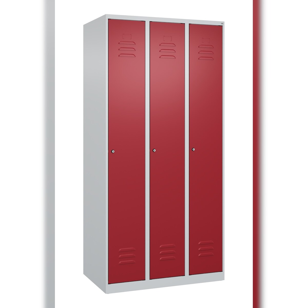 C+P Spind Classic PLUS, 3 Abteile, HxBxT 185x90x50cm, Zylinderschloss, Hellgrau/Rubinrot von PROREGAL