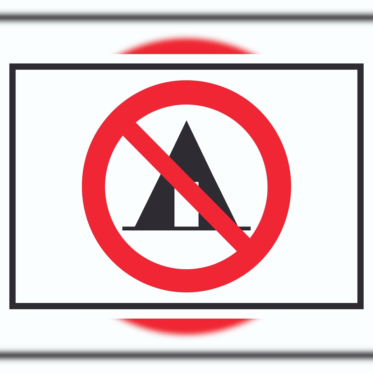 Zelten verboten Symbol Schild A2 Rückseite selbstklebend