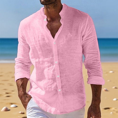 Per uomo Camicia Camicia di lino Camicia Estiva Abbigliamento da spiaggia Camicia con Bottoni Semplice Vacanza Quotidiano Nero Bianco Rosa Blu Manica Lunga Colletto alla coreana Estate Primavera