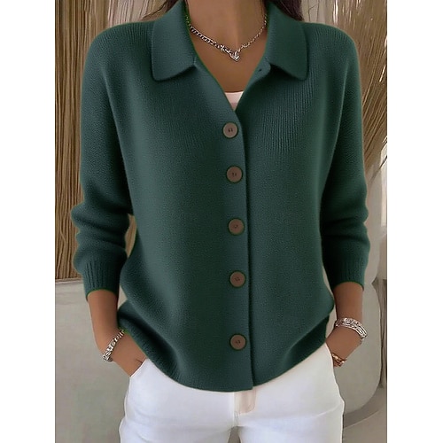 Per donna Felpa Elegante Casual Morbido Colore Puro A Coste Colletto a Camicia Lavorato a maglia Manica Lunga Top Regolari Maglia All'aperto Quotidiano Weekend Nero Bianco Primavera Autunno