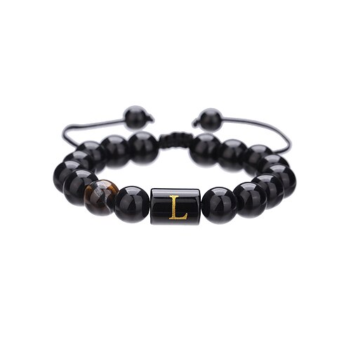 Bracciale regolabile da uomo in pietra naturale con design a lettere dell'alfabeto, personalizzabile con 26 lettere, perfetto come regalo, per occasioni casual e speciali