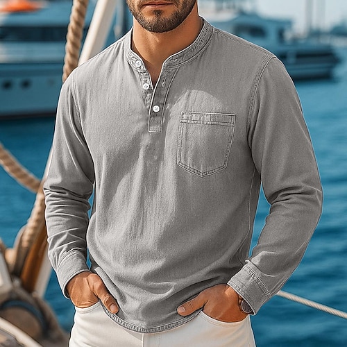 Per uomo Maglia Henley Camicia 100% cotone lavaggio acido Manica Lunga Henley Primavera Autunno Tutte le stagioni Vintage Retrò Vintage Casual Stile Vintage Lavato Casuale Blu Marrone Grigio
