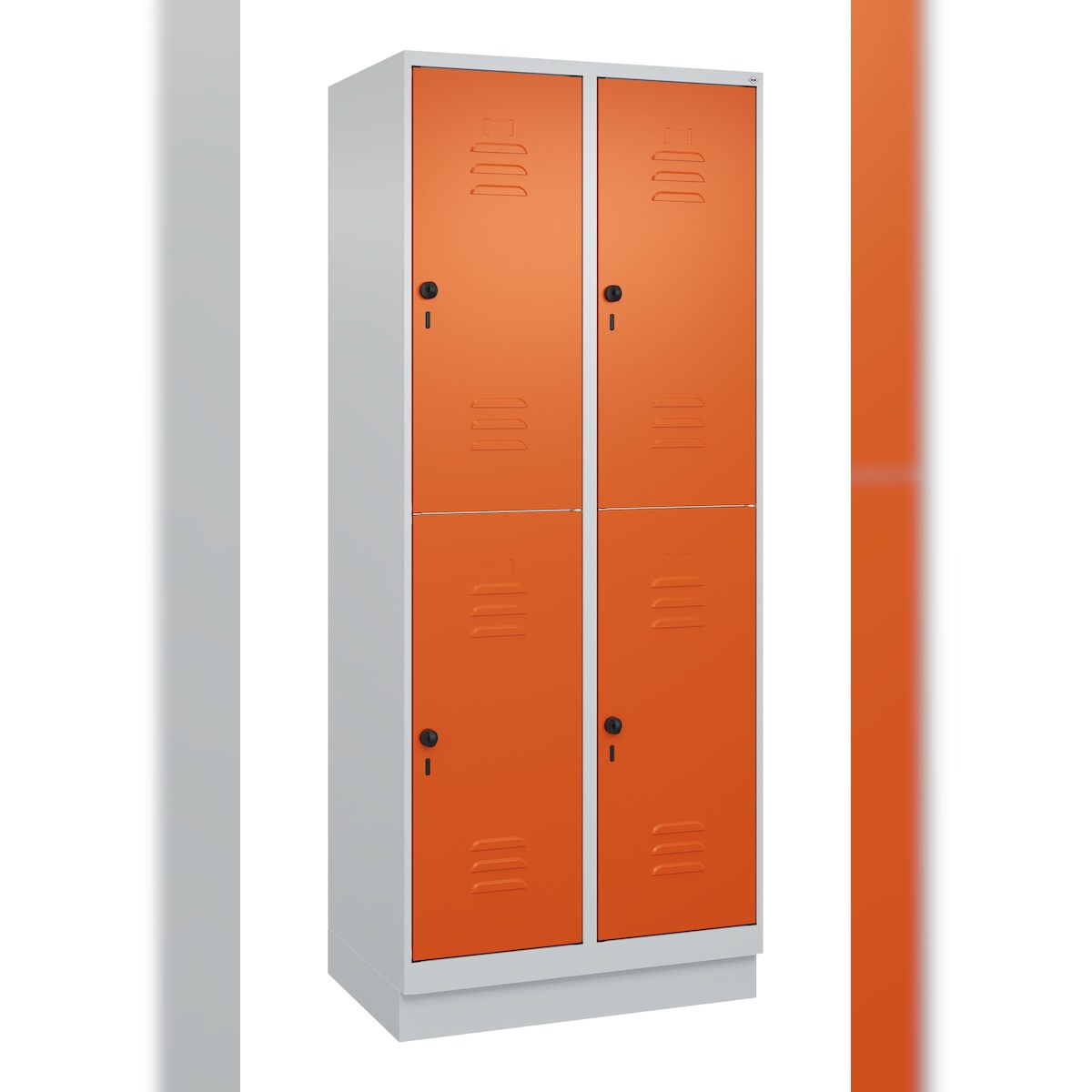 C+P Spind Classic PLUS, Sockel, 4 Abteile, HxBxT 195x80x50cm, Sicherheitsdrehriegel, Hellgrau/Reinorange von PROREGAL