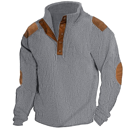 Per uomo Maglia Felpa a nido d'ape Nero Bianco Verde militare Cachi Grigio scuro Colletto Mao Blocco di colori Patchwork A coste Testurizzato Sport Outdoor Quotidiano Ferie Streetwear Essenziale