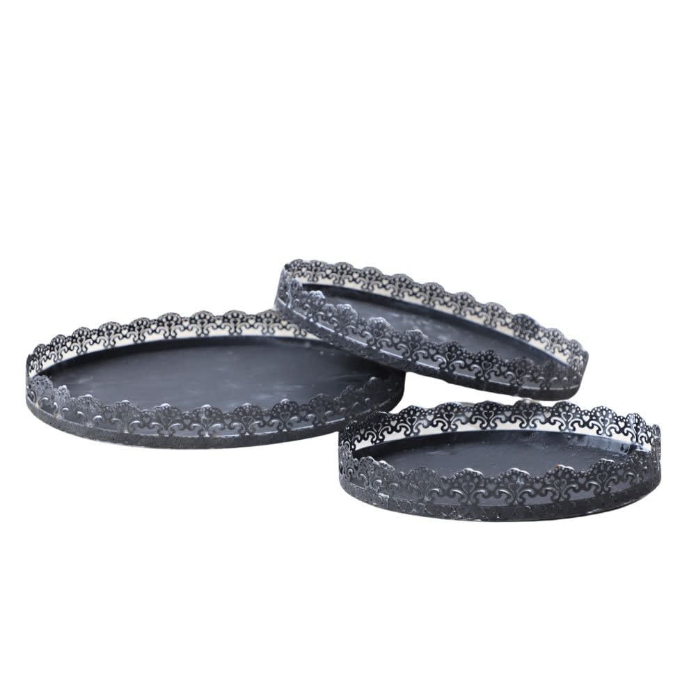 Set de 3 plateaux à gateaux motif dentelle en métal gris L.35 30 25 cm