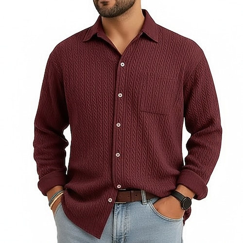 Per uomo Camicia Tessuto Camicia casual Camicia con Bottoni Nero Bianco Verde chiaro Borgogna Blu marino Manica Lunga Semplice Colletto a Camicia Casuale Quotidiano Jacquard Abbigliamento Elegante