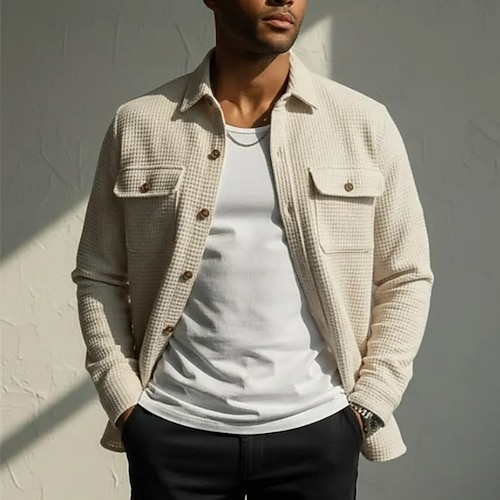 Per uomo Camicia Camicia a nido d'ape Tessuto Camicia casual Camicia con Bottoni Nero Bianco Borgogna Verde Kaki Manica Lunga Semplice Colletto a Camicia Casuale Quotidiano Tasca Frontale