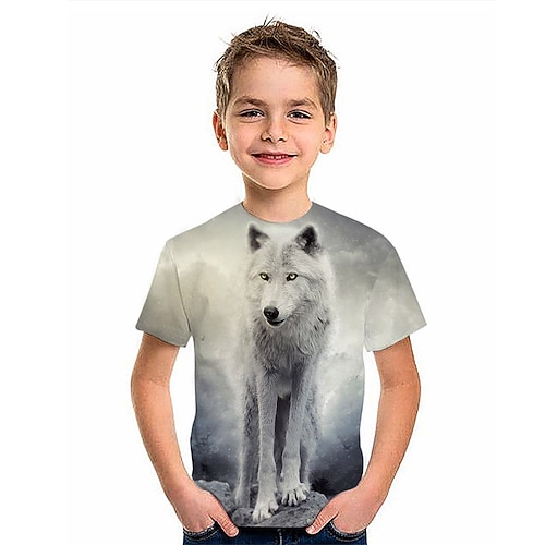 Da ragazzo 3D Animali Lupo maglietta Manica corta Stampa 3D Estate Primavera Attivo Sportivo Di tendenza Poliestere Bambino 3-12 anni Esterno Giornaliero Standard