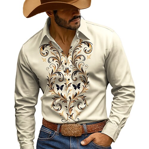 Per uomo Stampa Floreale Fiori Camicia Camicia con Bottoni Camicia da cowboy Manica Lunga Stile Western All'aperto Casuale Abbigliamento da lavoro Primavera Autunno Collo ripiegato Stampa 3D camicie