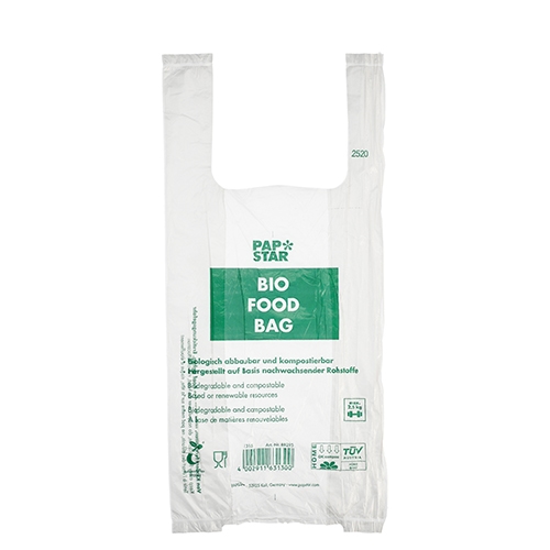 Papstar 2400 Hemdchen-Tragetaschen, Bio-Folie 47 cm x 22 cm x 13 cm transparent Knotenbeutel auf Rolle