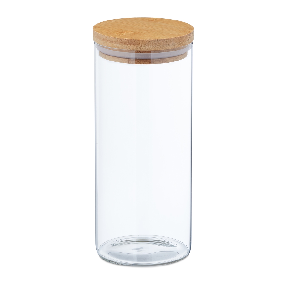 Relaxdays Vorratsgläser mit Bambusdeckel, 3er Set, runde Vorratsdosen aus Glas, 1300 ml, luftdicht, transparent/natur