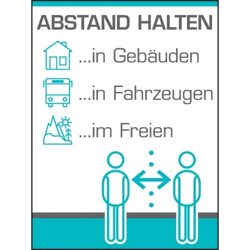 Schild I Aushang ABSTAND HALTEN in Gebäuden, in Fahrzeugen, im Freien, Kunststoff, 300x400mm