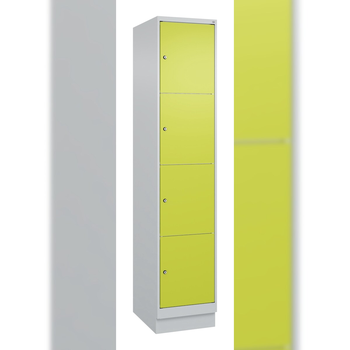 C+P Schließfachschränke Classic PLUS, Sockel, 4 Abteile, HxBxT 195x40x50cm, Zylinderschloss, Hellgrau/Clowngrün von PROREGAL