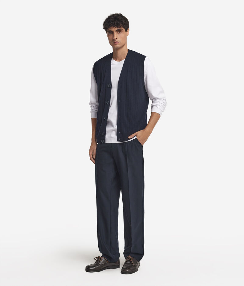 Falconeri Gilet a coste in Cashmere Ultrasoft Uomo Blu Navy Taglia 50