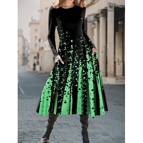 Per donna Abito Midi Abito a trapezio Abito aderente e svasato Casual Quotidiano Vestibilità regolare Grafico Geometrico Manica Lunga Girocollo Bianco Rosso Blu Viola Autunno Inverno