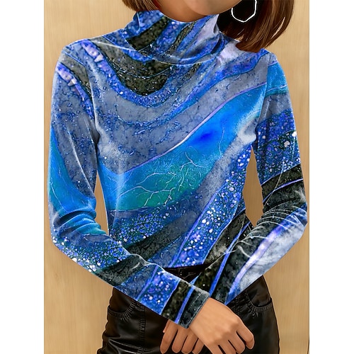Per donna Maglietta Grafico Astratto Geometria Elegante Vintage Moda Manica Lunga Collo Alto Top Regolari Quotidiano Uscire Weekend Stampato Blu Giallo Viola Verde Autunno