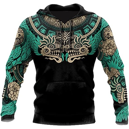 Per uomo Grafico Tribale Armatura Vichingo Felpa con Cappuccio Felpe con cappuccio Felpa Abbigliamento Sportivo Etnico Casual Grande e Alto Azteco occidentale Manica Lunga Con Cappuccio Casuale