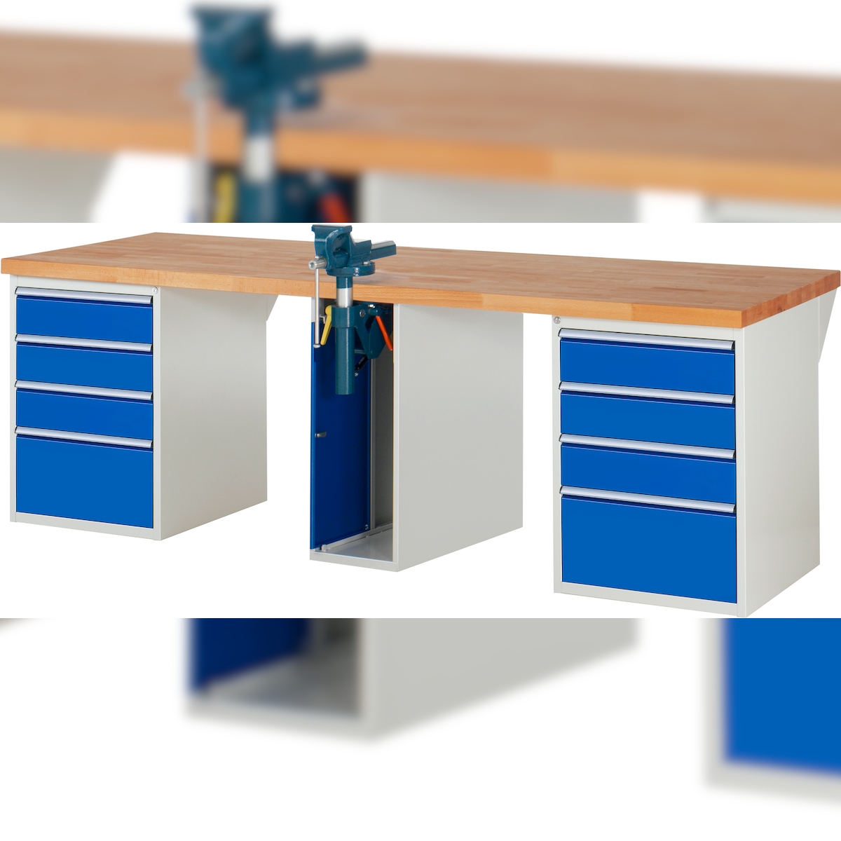 PROREGAL Werkbank Serie 7000 - Modell 7510 | HxBxT 84x250x90cm | 8x Schublade + 1x Schrank inkl. SchPROREGALbstock | Schubladenmaße 8x180mm